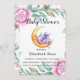 Te encantará este lindo dragón bebé durmiendo en la luna y las peonías rosadas y follaje verde salado. ¡Ideal para una ducha de bebé!