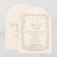 Invitación Drawn Green Pink Bow Floral Summer Arched Wedding