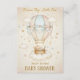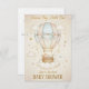 A soft, dreamy baby shower invitation featuring a pastel hot air balloon floating among fluffy clouds, golden stars, and gentle hearts. At the center, a peacefully sleeping baby rests in a cozy basket with a tiny teddy bear, creating a warm and magical atmosphere. With its elegant gold lettering and watercolor style, this invitation is perfect for celebrating the arrival of a little one. Ideal for baby showers, gender-neutral events, and nursery-themed celebrations.