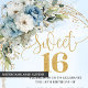 Celebrate a milestone moment with this elegant Sweet Sixteen invitation, featuring a refined watercolor design of dusty blue florals blended with soft white flowers and fresh eucalyptus greenery. Framed by a shimmering gold glitter border and paired with graceful script lettering, this invitation sets a sophisticated tone for a truly unforgettable Sweet Sixteen, Sweet 16th, or 16th birthday celebration.