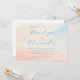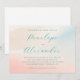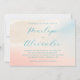 This wedding invitation features a soft, pastel watercolor background with hues of peach, pink, and cream, creating a gentle and dreamy atmosphere. The elegant script typography in deep teal stands out against the light backdrop, offering a modern yet timeless look perfect for formal occasions. Customizable placeholders allow personalization for names, dates, and locations, while the balanced layout ensures readability and sophistication. Ideal for couples seeking a warm and inviting design to celebrate their special day.