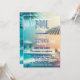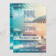 Esta vibrante invitación a una fiesta en la piscina exuda el encanto tropical, perfecto para una celebración al sol. El fondo degradado pasa de azul cielo en la parte superior a un cálido tono dorado, que recuerda a una puesta de sol de verano. Establece el ambiente para una reunión divertida y relajada. Las hojas de palmera exuberantes, que enmarcan la esquina superior izquierda, aportan un toque exótico. Sus tonos verdes evocan el paraíso costero. Puedes personalizar todo el texto para que se adapte a tu evento, ya sea un bash de cumpleaños, una velada de verano o cualquier otra ocasión.