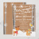 ¡Un maravilloso país invernal para celebrar a tu pequeño UNO! Empieza tu celebración con esta invitación de ensueño. Ideal para la temática invernal de las maravillas. Tiene luces de cuerda, copos de nieve, nieve y abedules en un fondo de madera de color marrón. Hay animales en la nieve, un ciervo, una ardilla y un pájaro en los árboles. Personalice la información de su fiesta en el centro. Personalizar esta invitación con estilo de fuente, color y tamaño.
