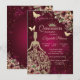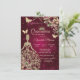 Invitación Dress Chic,Mariposa Floral Rojo Quinceañera