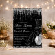 Invitación Dress negro y Purpurina de goteo plateado dulce 16