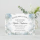 Guay como una brisa oceánica, estas hermosas invitaciones tropicales a la ducha de bebé, con hojas de acuarela pintadas a mano y follaje en tonos polvorientos de cian azul y verde pálido. Las hojas de palma y los helechos son el tema perfecto para tu ducha de bebé tropical. ¡Listo para ser personalizado con todos sus detalles! © Diseño original creado para JustCards™ por WhimsicalArtwork™.