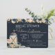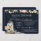 Flores acuáticas azul marino y rubia y ducha con linterna de novia invitación con vintage lace boho, rústica y rústica ducha de novia.