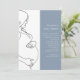 Hermosa invitación minimalista a la ducha de bebé con una mujer embarazada con línea trazada sobre un fondo blanco a la izquierda y un polvoriento bloque de color azul a la derecha donde puedes añadir todos los detalles para el día especial. si tienes algún problema con este diseño, por favor contáctame a través del botón de mensaje de mi tienda y estaré encantado de ayudarte. janine de willow spring studio.