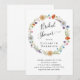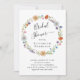 La invitación a la ducha de novia inspirada en el Boho incluye una corona de flores silvestres florales y una "ducha de novia" en un elegante guión de swash.