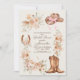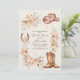 Boho Floral Western Bridal Shower Invitation Celebrar el futuro estilo de la novia con nuestra invitación Boho Floral Western Bridal Shower! Esta atractiva invitación capta la esencia del encanto rústico y la elegancia bohemia, lo que la convierte en la elección perfecta para una inolvidable ducha de novias que refleja la personalidad y el estilo únicos de la novia. Características principales: Encantador diseño floral de Boho: con impresionantes arreglos florales en tonos tierra, esta invitación combina una estética bohemia con elementos rústicos occidentales, creando un ambiente cálido y acogedor para sus huéspedes. Materiales de alta calidad: Imprimidos en cartuchos premium, nuestra invitación a la ducha de novia muestra colores vivos y detalles complejos, asegurando un ambiente lujoso que impresiona a sus huéspedes. Opciones de personalizable: Personalice la invitación con el nombre de la novia, la fecha de la ducha, la ubicación y cualquier otro detalle importante, permitiéndole crear un conservador único que refleje el espíritu de la celebración. Tamaño generoso: con amplio espacio para todos los detalles de tu ducha de novia, esta invitación garantiza a tus huéspedes toda la información necesaria de una mirada, lo que lo hace hermoso y funcional. Perfecto para diversas celebraciones: Ya sea que esté planeando una reunión casual en el patio trasero o un evento más formal, esta invitación complementa una variedad de temas de ducha de novia, lo que lo hace una elección versátil para cualquier celebración. ¿Por Qué Elegir Nuestra Invitación A La Ducha De Novias? La Invitación a la ducha de novias occidentales de Boho Floral es más que una invitación; es una parte esencial de la celebración que marca el tono para un hermoso día lleno de amor y risas. Su encantador diseño y sus materiales de calidad garantizan que sus huéspedes apreciarán la atención y la elegancia de su papelería. Haz que tu ducha de novia sea inolvidable con esta impresionante invitación. ¡Por favor, crea un ambiente acogedor que celebra a la futura novia!