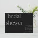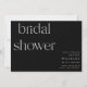 Invitación a la ducha de novia. Información sobre la espalda también. Fuente contemporánea. Una ducha de novia blanca y negra invita a bañarse. Moderno.