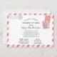 Una invitación de baby shower por correo es perfecta para aquellos que viven lejos de sus seres queridos, pero que aún así quieren colmar a los futuros padres de amor y regalos para preparar la llegada de su bebé. Esta invitación de baby shower a distancia por correo está editada para sentirse como una postal vintage y presenta el poema de solicitud "Es difícil vivir tan lejos Cuando el bebé está en camino. Reunir a los seres queridos puede ser muy difícil Así que si lo deseas, por favor envía tu regalo o tarjeta. Y a medida que lleguen día a día, Sentirán todo tu amor desde lejos". Personaliza con tus palabras. Haz clic en "Personalizar más" para editar el estilo, tamaño y color de la fuente si lo deseas.