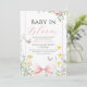 Celebre la llegada de una bebé con esta invitación de Ducha de Bebé con tema de Bebé en Flor y Mariposa con estilo antiguo. Este diseño encantador cuenta con un lazo, mariposas y flores en tonos rosa, azul y verde, ideal para una fiesta de bebé de niña. Personalice los detalles con facilidad para crear la invitación perfecta para su evento especial.