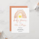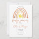 Una linda invitación a la ducha de bebé con un arcoíris y sol de acuarela boho y tipografía elegante. Diseñado por Thisisnotme©