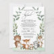 Celebra la próxima llegada de tu dulce bebé niño / niña con esta caprichosa invitación de "ducha de bebé por correo" de tema neutral bosque. El diseño cuenta con un hermoso wreath de vegetación pintado a mano con acuarela y un grupo de adorables animales del bosque.