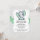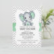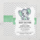Invitación Ducha de Bebé Brillo Verde Elefante Chevron