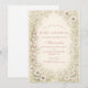 Un suave diseño floral romántico que presenta glicinias en cascada, rosas de jardín rosadas, ranúnculos cremosos y delicadas flores blancas dispuestas en una composición vertical aireada. Las flores enmarcan suavemente un cálido fondo de pergamino, creando una estética elegante y de inspiración vintage con sutil profundidad y movimiento. Los tonos rosados y lavanda suaves se sienten refinados y femeninos, manteniendo un equilibrio ligero y elegante. Perfecto para una celebración atemporal de primavera o inspirada en el jardín.