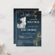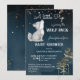 Plantilla de invitación para ducha de bebé con tema de lobito para descargar instantáneamente, adorable cachorro de lobo con fondo oscuro de noche estrellada.