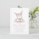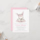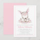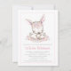Conejo bebé niña en un fondo floral de acuarela rosa pastel. Esta linda invitación de ducha de bebé de conejo bebé niña se personaliza fácilmente para su evento simplemente agregando sus detalles. Puede cambiar el color de fondo al frente y atrás.