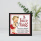 Invitación de ducha de bebé de mariquita con una adorable bebé rubia de pelo claro que lleva un traje de mariquita roja y negra y perlas en un bonito fondo rojo y negro con texto de mariquita. Puede personalizar fácilmente esta adorable invitación de ducha de bebé de mariquita roja y negra para su evento simplemente agregando sus detalles en el estilo de fuente y color que prefiera.