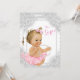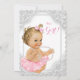 Elegante invitación para baby shower de perla blanca con adorable bebé niña que lleva un tutú rosa y collar de perlas sobre un hermoso fondo de remolino de perla blanca. Esta elegante invitación de baby shower de perla se personaliza fácilmente para su evento simplemente agregando sus datos en el estilo de fuente que elija. También puede cambiar el color de fondo de esta adorable invitación de baby shower de perla. Este es un diseño impreso sin perlas reales, etc.