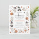 ¡Prepárate para una fiesta de baby shower de Halloween espeluznante! Haz que la llegada de tu pequeño Boo sea especial con nuestra invitación personalizada para baby shower de Halloween Boo. Celebra con un diseño único y personalizado que presenta el encanto de diseños de acuarela pintados a mano de fantasmas espeluznantes, arañas lindas, calabazas caprichosas y hojas de color naranja quemado otoñal, mezclando sin esfuerzo la alegría de dar la bienvenida a un nuevo bebé con el espíritu divertido de Halloween. ¡Ordena ahora y obtén el comienzo perfecto para tus celebraciones de Halloween!