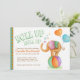Un bonito y caprichoso circo de elefantes para bebés ofrece invitaciones. Arte de acuarela de un elefante que balancea sobre una bola de bebés blandos, que riñe corazones de burbujas y con dos globos en forma de corazón atados a la cola de los elefantes. Unisex y singulares invitaciones a la ducha de bebés en tonos marrones, verdes, morados, naranjas y azul acuático. También están disponibles los elementos coincidentes. Personalice los detalles de la ducha para bebés. © Únicamente pintado en acuarela y diseñado por Sarah Trett www.sarahtrett.com para www.mylittleeden.com en zazzle.