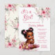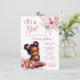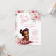 Celebra a tu próximo bebé con esta impresionante invitación de baby shower con tema rosa y dorado. El diseño muestra a una adorable bebé afroamericana con encantador cabello esponjoso con lazos, vestida con los pantalones de volantes rosados y dorados más lindos y botines a juego. La invitación está bellamente acentuada con flores de acuarela rosa suave, lo que agrega un toque de elegancia y dulzura a tu evento especial. Esta invitación es perfecta para una fiesta de baby shower que emana calidez, estilo y amor. La paleta de colores rosa y dorado ofrece un ambiente clásico y moderno, mientras que la ilustración de la bebé trae una sensación de alegría y anticipación por la llegada de tu pequeño. Personaliza la invitación con los detalles de tu evento para crear un recuerdo único y memorable. Ideal para aquellos que aprecian una mezcla de sofisticación y encanto adorable, esta invitación establecerá el tono perfecto para la celebración de tu baby shower.