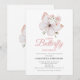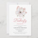 Invitación de ducha de bebé La pequeña mariposa está en camino. Diseño delicado de mariposa rosa y flores en acuarela. Perfecto para niña. Personaliza la invitación con tu propia información.