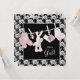 Adorables zapatos rosas, chupete, zapatos y conejito en una cuerda de ropa invitación de ducha de bebé niña rosa y negra. Puede personalizar fácilmente esta dulce invitación de ducha de bebé rosa y negra agregando los detalles de su evento, estilo de fuente, tamaño y color de la fuente y redacción.