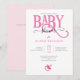 Invitación adorable para la ducha de bebé rosa con tipografía de BEBÉ ROSA y chupete rosa