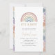 Nuestra invitación de baby shower "It's A Boy" bohemio y neutral en cuanto al género, Arcoíris, presenta un encantador arcoíris boho retro pintado a mano con acuarela, anidado dentro de un marco de arcoíris pastel. Perfecta para dar la bienvenida a bebés niños o niñas, cada pieza de esta adorable colección emana una elegancia despreocupada que captura la alegría y la anticipación de este hito especial. Desde invitaciones hasta decoraciones, infunde tu celebración con el encanto atemporal de nuestra encantadora colección, creando recuerdos tan mágicos como tu pequeño. Compra ahora y embarcate en un viaje de amor y risas con nuestra caprichosa colección de baby shower boho retro arcoíris.