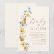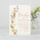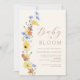 Celebra a la futura mamá con esta invitación de baby shower de género neutro "Baby in Bloom" con flores silvestres, que presenta un diseño impresionante de flores silvestres en acuarela en una rica paleta de tonos azules, amarillos y terrosos suaves. Las flores en tonos de naranja quemada, azul de aciano, amarillo, púrpura, melocotón, marrón y beige cálidos y vibrantes crean una atmósfera cálida y acogedora para esta ocasión especial. El arco floral delicado enmarca el diseño, mientras que la tipografía boho-chic caprichosa en una letra juguetona añade un toque de personalidad y encanto.