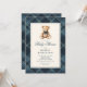 Celebre a la futura mamá con estas invitaciones para baby shower con el diseño Vintage Plaid Teddy Bear. Con un fondo de tartán azul elegante y costuras de falso foil dorado, este diseño combina la tradición clásica con un encanto suave y moderno.