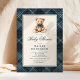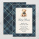 Invitación Ducha de Bebé Oso de Peluche Clásico Cuadros Azule