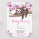 Invitación Ducha de Bebé Perezoso Floral Rosa y Dormilón