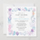 Invitación de ducha de bebé sirena bajo el mar con acuarela adorable. Diseño femenino presenta una sirena, criaturas bajo el mar, conchas marinas y coral en estilo acuarela.