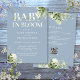 Invitación de ducha de bebé todo en uno Baby in bloom con código QR de registro y detalles de la ducha de bebé en elegante tipografía de follaje botánico sobre fondo azul polvoriento. Diseñado por Thisisnotme©