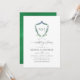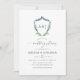 Invitación de ducha de boda con monograma de cresta frondosa con tipografía de escritura a mano elegante personalizable con las iniciales de la pareja.