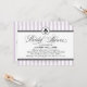 Una invitación fresca y femenina de boda parisina con rayas de lavanda y blanco con un medallón de fleur de lis y un acento de cinta negra punteada. Los tonos suaves de púrpura dan al diseño inspirado en Francia un giro romántico y contemporáneo, mientras que la tipografía de caligrafía y serif mantienen la elegancia clásica. Todo el texto es totalmente personalizable.