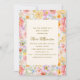 Esta invitación romántica para baby shower presenta un borde floral de acuarela soñadora en tonos suaves de rubor, lila, amarillo mantequilla y melocotón. El diseño pictórico tiene una elegancia atemporal que es perfecta para fiestas de jardín, celebraciones de primavera o tés de la tarde. Una elección encantadora y femenina para honrar a la futura mamá con estilo.