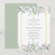 Hojas bonitas de salvia y lila caen sobre un elegante marco dorado que encierra los detalles de la ducha de boda de la pareja en texto clásico elegante. Diseñado por Thisisnotme©