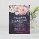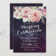 Invitación Ducha de bodas pluma de flores y luces moradas