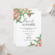 Carta de ducha de color marrón con tema de fruta acuática con ilustracion acuático de melocotones en una rama de árbol. Elegante caligrafía escrita, perfecta para bodas de primavera, verano o otoño. Elementos coincidentes disponibles.