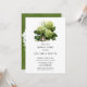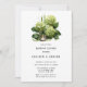 Hermosas hortensias de color verde con una mariposa verde y velas. Este conjunto de colecciones ofrece invitaciones y suministros para fiestas de boda.