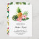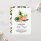 Invite a la familia y amigos con esta divertida y festiva invitación a la ducha de bodas. Cuenta con ilustraciones acuáticos de hibisco rosa, piña y follaje, que combinan con un patrón tropical en la parte posterior. Esta invitación tropical es totalmente editable para cualquier evento tropical y de estilo hawaiano. Personalice agregando sus detalles. Los elementos coincidentes están disponibles.