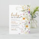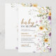 Esta elegante invitación de Baby in bloom presenta flores silvestres acuarelas rosadas, violetas y amarillas, hojas rústicas de verde y ramitas. ¡Disfruta!