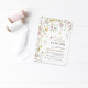 Esta tendencia de invitaciones de Baby in bloom presenta flores silvestres rosadas y amarillas de acuarela, manzanilla rústica, hojas verdes y ramitas. ¡Disfruta!