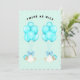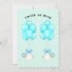 Invitaciones de shower de bebé para gemelos niños creativos con globos azules y gemelos con casco.