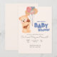 Invitación Ducha de globos bebé oso de peluche rosa rubor